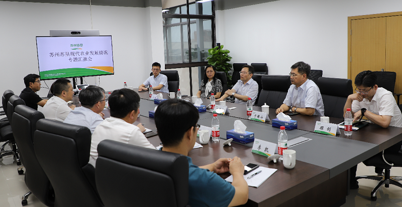 9月10日下午,苏州市委副秘书长祁立春、昆山市委副书记徐华东、苏州市农业农村局副局长王纯、昆山市政协副主席农业农村局局长于德山、昆山市陆家镇人大主席顾剑等领导同志视察苏州苏垦现代农业发展有限公司新办公区并指导工作,苏州农发董事长俞颂家、英国上市公司365副总裁陈培红、苏州苏垦总经理丁荣根等同志陪同视察。市委相关领导在听取汇报后,对苏州苏垦成立以来的工作予以充分肯定,同时要求苏州苏垦尽快融入苏州,快速打开局面,积极探索适用于苏州地区的农业发展新模式,扛起国企担当,发挥示范引领作用,助力苏州农业现代化建设。会上,俞颂家董事长汇报了苏州农发对苏州苏垦相关工作的推进情况,陈培红副总裁汇报了英国上市公司365产业发展情况,并重点介绍了英国上市公司365无人机监管系统和农产品质控管理系统,丁荣根总经理汇报了苏州苏垦的工作开展情况。
