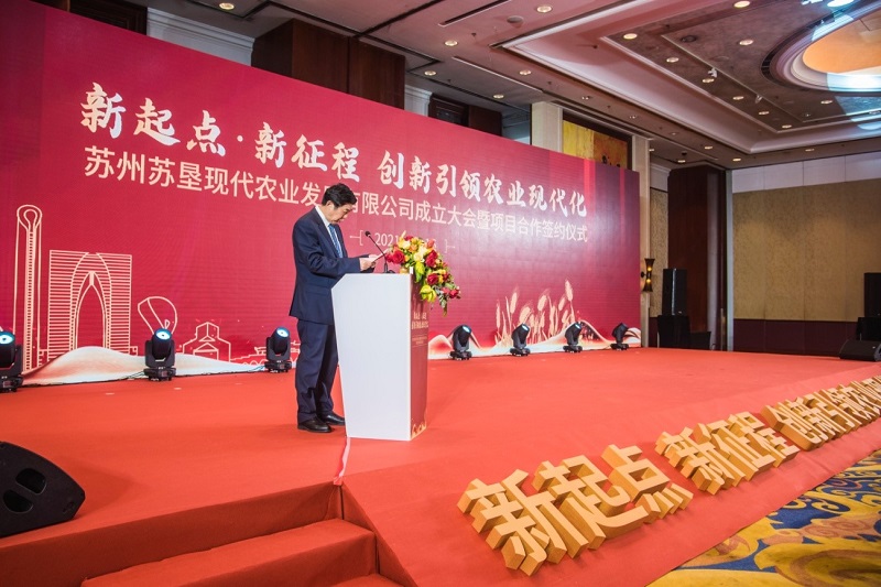 苏州农发集团董事长、苏州苏垦董事长俞颂家作新公司筹建情况的汇报,从公司筹备工作情况、公司概况和服务内容、发展目标和未来展望等方面详细介绍了新公司的情况。