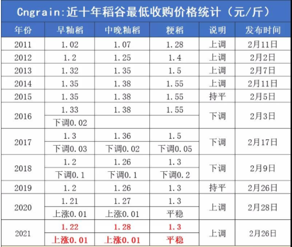 • 1、2021年稻谷最低收购价公布