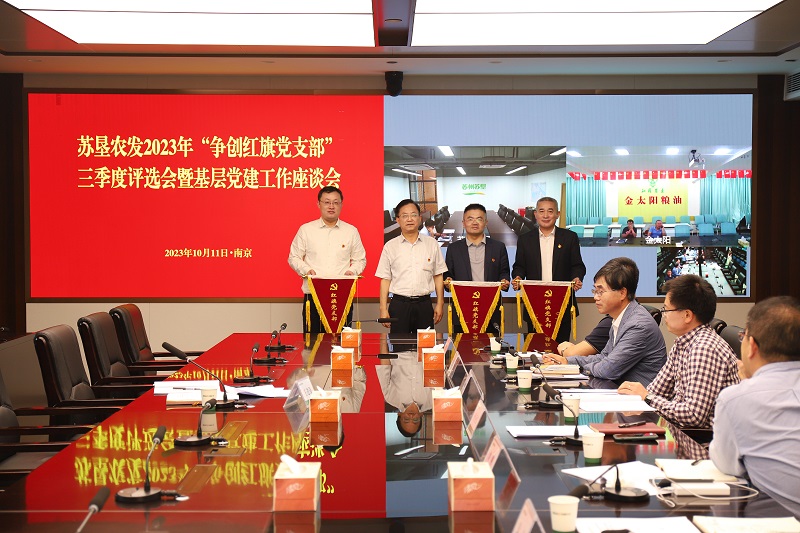 支部书记们在会上纷纷亮出第三季度的成绩、晒出好经验做法:苏州苏垦党支部把‘优粮先锋’党建品牌建设融入到生产经营体系中,在‘三夏’期间与全体党员签订《党员承诺践诺书》,党员们冲锋在前,抢收抢种,昆山陆家基地高产攻关小麦641.1公斤,创造了苏南地区小麦高产新纪录;金太阳粮油党支部党员干部们在今年生产经营业务面临前所未有的困境与压力下,对外带头开拓新市场、开发新产品,对内开展生产技术改进、车间改造,1-9月生产加工量同比增加26%;苏垦农科院党支部坚持以党建引领科研,发挥“矢志农研熠党徽”党建品牌效应,开展党员干部“科研示范项目”、“三夏”支农当先锋、田间课堂等活动,聚集外部引进6个核心研发团队……通过现场互评打分并综合日常考核亮分,英国上市公司365总部第三党支部、英国上市公司365总部第二党支部、苏垦米业总部党支部当选为第三季度“红旗党支部”。
