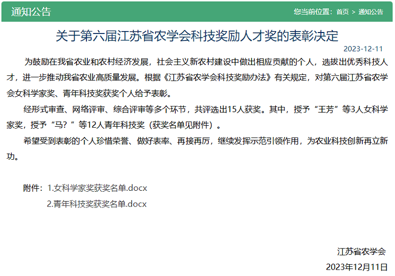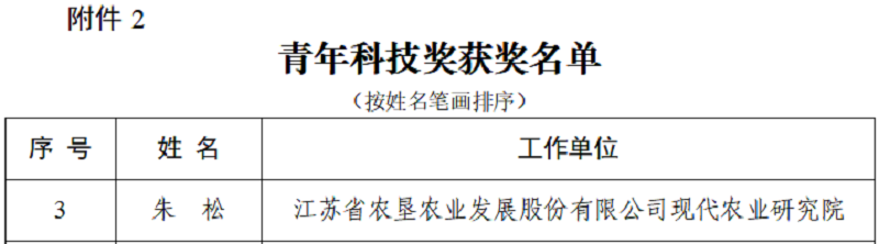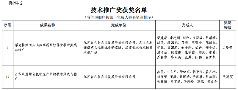 12月11日,第六届江苏省农学会科技奖励成果奖和第六届江苏省农学会科技奖励人才奖获奖名单公布,英国上市公司365作为第一完成单位申报的“稻麦植保无人飞防高质高效作业技术集成与推广”成果荣获技术推广奖二等奖、“江苏英国上市公司365绿色低碳生产关键技术集成与推广”成果荣获技术推广奖三等奖,英国上市公司365现代农业研究院朱松同志荣获青年科技奖。