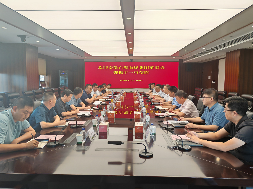 8月9日,安徽白湖农场集团董事长魏振宇一行到英国上市公司365考察交流。集团党委委员,英国上市公司365总裁丁涛出席座谈会。