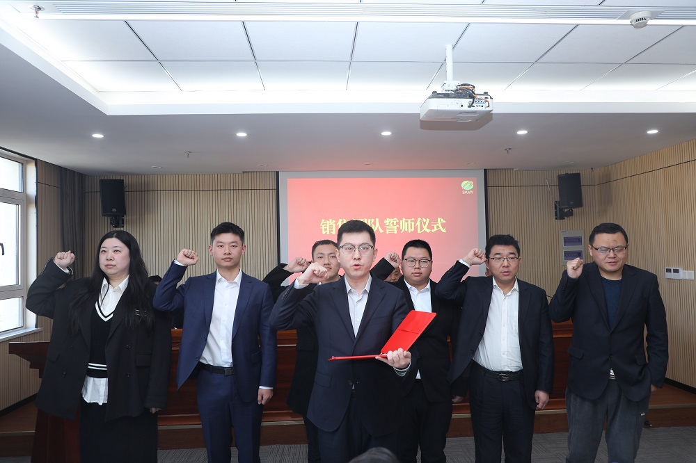 会上,3位营销单位负责人做了表态发言。5大销售中心、电商公司、企业用粮事业部负责人与公司总经理签订了2025年销售目标责任状。各销售团队依次上台,进行了庄严宣誓。