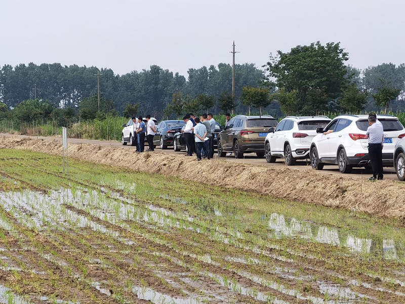 为进一步强化水稻栽后生产管理,7月1日,东坝头开展水稻生产管理工作大检查。分公司副总经理、工会主席浦东同志及相关农业生产管理人员参加。此次生产检查重点针对水稻整地质量、栽播质量、栽后补秧、肥料运筹、返青长势、水层管理和杂草化除,面源环境整治等工作。检查小组对东坝头在田水稻进行了全面检查,参与检查人员深入田间地头查看水稻长势、询问田间管理等情况。检查结束后,东坝头立即召开了水稻生产检查交流会,所有参加检查的人员就检查田块的品种、播期、施肥、化除等基本生产情况进行了评价交流,认真听取在场人员提出的相关建议。最后,浦东同志根据农发总部种植业管理中心《2022年水稻栽后管理生产检查情况通报》文件精神,结合当前检查的实际情况进行分析评价,并提出相关要求:一是抓好水层管理,促进浅水处分蘖;二是加快施肥节奏,减轻田间杂草防除压力;三是继续跟进查苗补缺工作,为东坝头水稻超高产打下坚实基础;四是坚持“药肥双减”,严格按照《东坝头农情》麦稻操作规程用药,确保稻米质量安全;五是农业中心要加强病虫草害预测预报,科学制定防治策略,提高综合防治效果。